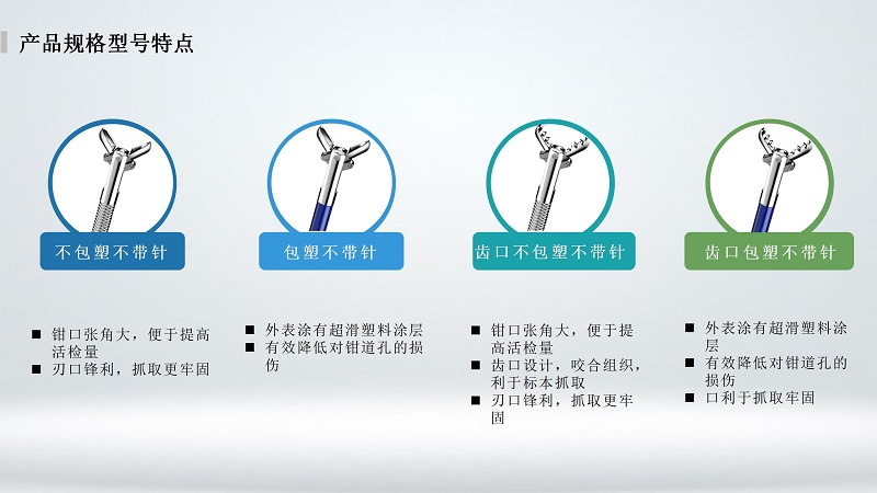 可旋转型活体取样钳的钳头可360°1:1同步旋转,针对取活检角度比较困难、位置不是特别好的时候,可通过旋转钳头角度来解决这一问题,抓取更加精准。內轴旋转,减少镜子损伤。 医生可以根据需要自由调整器械的角度和方向。这种设计可以提供更大的灵活性和便利性,使医生能够更好地适应不同的手术环境和操作需求,减少了手术过程中的不便和疲劳。